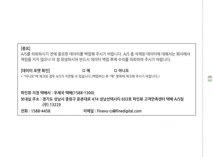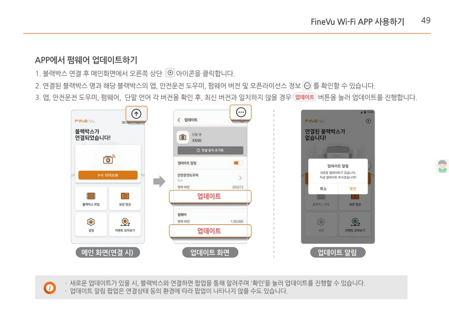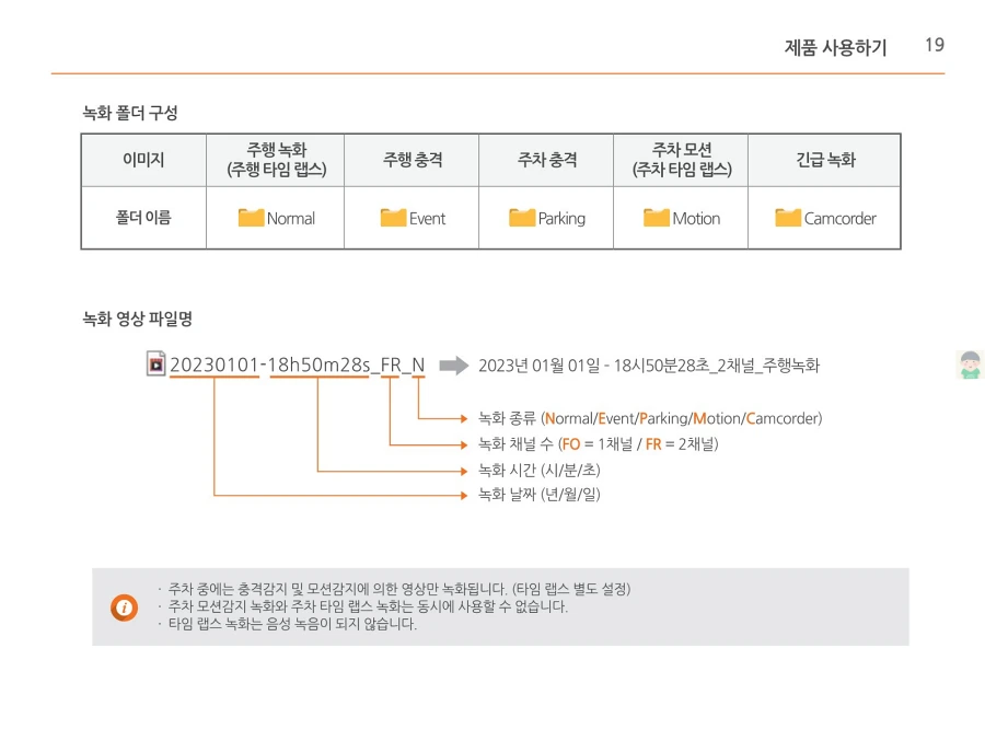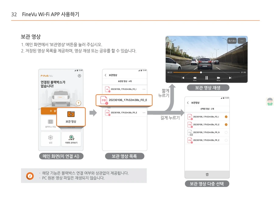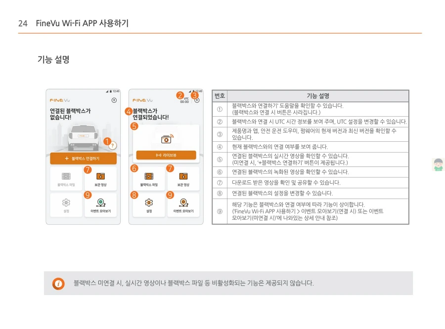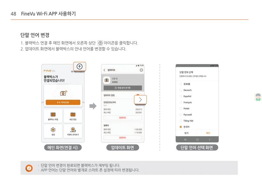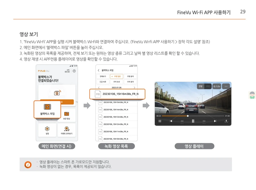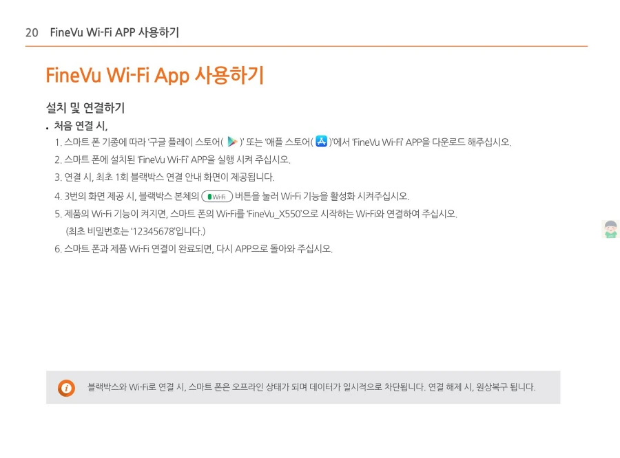 파인뷰 블랙박스 X550의 사용설명서입니다. 이미지로 정보를 바로 확인할 수 있습니다. 글자가 잘보이지 않을때에는 PC에서 이미지를 클릭하면 더 크게 보실 수 있고, 모바일에서는 손가락으로 확대하여 보실 수 있습니다.