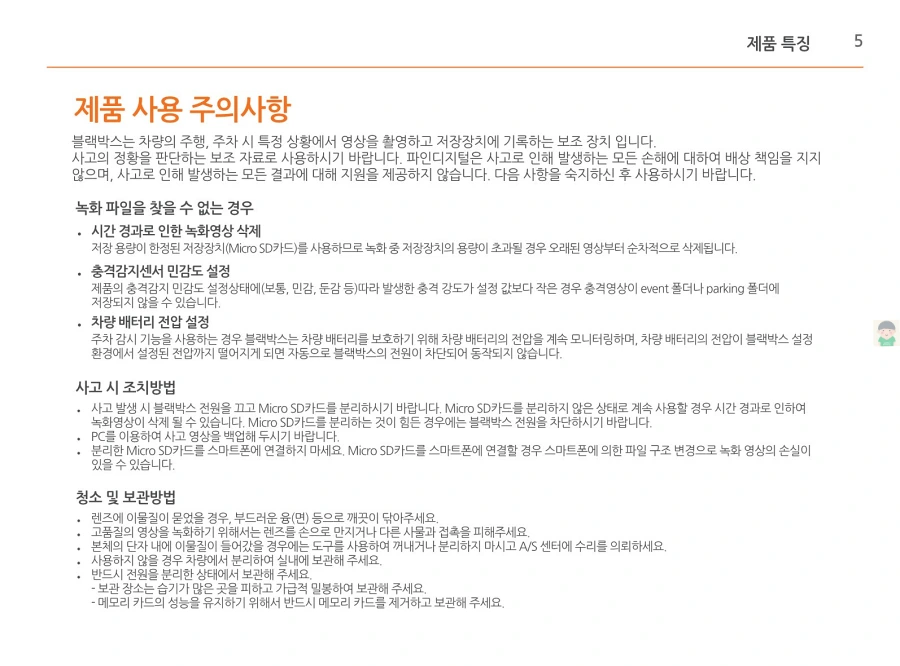 파인뷰 R5 POWER 제품특징과 사용설명서