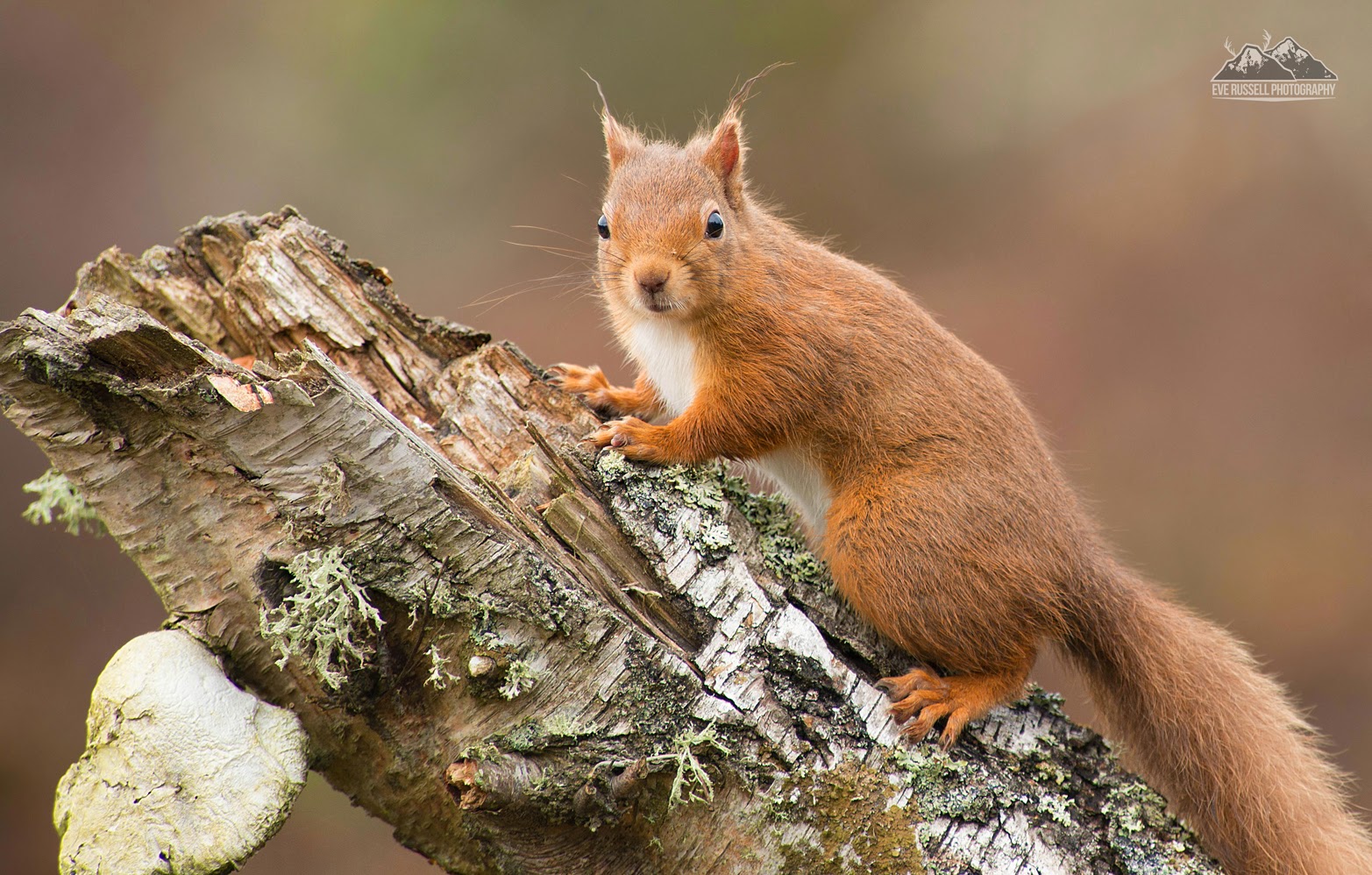 The red squirrel, a species of tree squirrel in the genus Sciurus, is most commonly found throughout Europe (though numbers have decreased in recent years due to competition from the more robust grey squirrel), Asia, and North and South America. As the name suggests, red squirrels have thick coats of red fur, which moults to produce a more chocolate-coloured coat in winter. They use their most distinctive feature, their large, bushy tails, for balance while climbing and jumping between tree branches. They have exceptional vision which allows them to move quickly within the tree canopy while foraging.